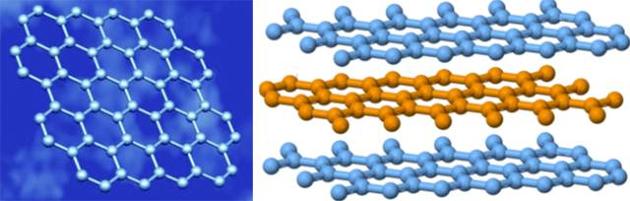 | 石墨烯(左)和石墨(右) |