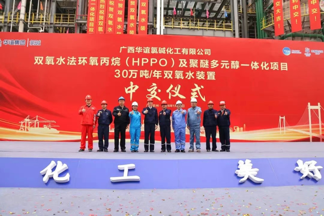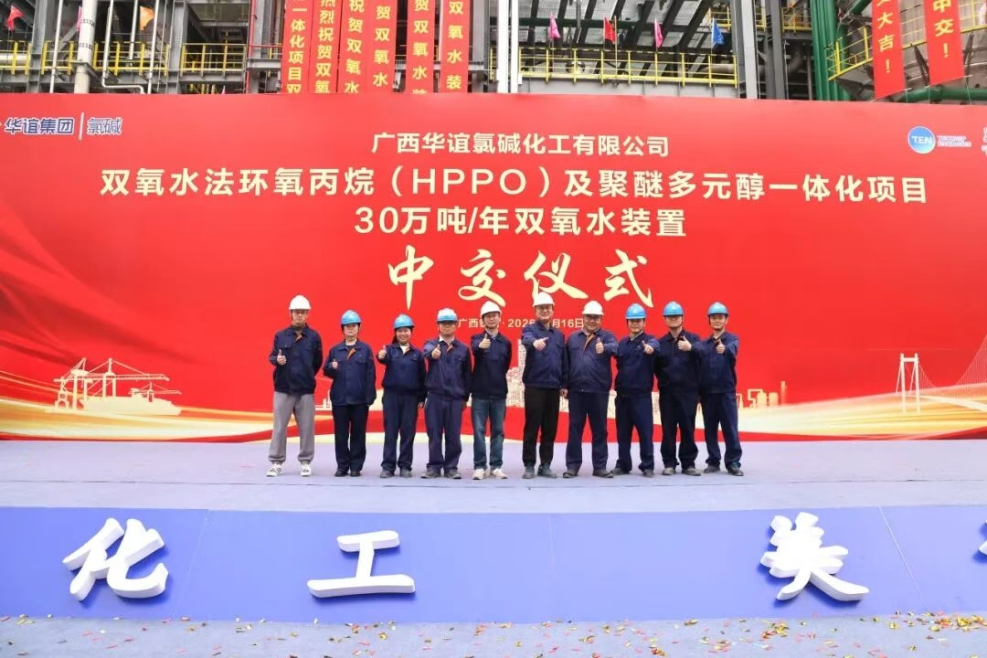 HPPO项目是华谊集团战略布局西南、对接东盟、延伸高端新材料产业链的核心项目之一,承载着优化产业结构、培育新增长点的重要使命,也是公司实施“走出去”战略、积极融入新发展格局、发展新质生产力的关键举措。此次中交的双氧水装置,采用国际先进的蒽醌法流化床工艺技术,具有产品浓度高、运行安全性强、环保效益突出等优势,相较传统工艺可减少80%的废水排放,是目前国内单线产能最大的流化床双氧水装置。