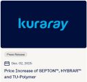2025年12月2日,可乐丽(Kuraray)弹性体事业部宣布,将上调日本鹿岛工厂生产的以下弹性体产品的交易价格,此次价格上涨自2026年1月1日起(或根据现有供应协议的规定)生效:所有在鹿岛工厂生产的SEPTON™、HYBRAR™和TU-Polymer产品:涨幅为1美元/公斤(1000美元/吨)。可乐丽表示,当前原料、工艺化学品、公用事业、物流、维护及其他