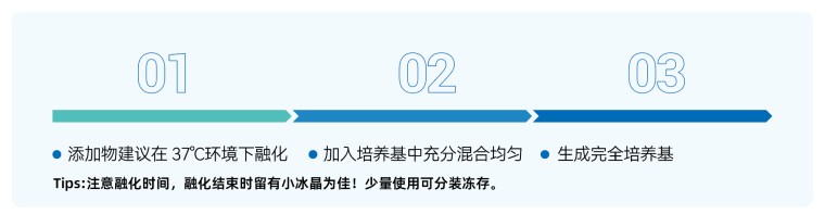 完全培养基建议现用现配,2周内用完(每次取用尽量减少暴露空气中的时间,取用后及时封口,避免 pH 快速升高)。 如培养体系小,建议根据实际用量将添加物分装冻存,按比例配制使用,避免反复冻融。