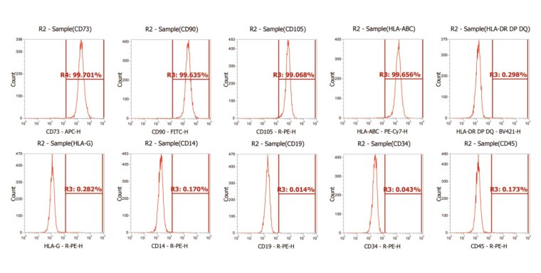 培养的hMSCs表面标记物检测: