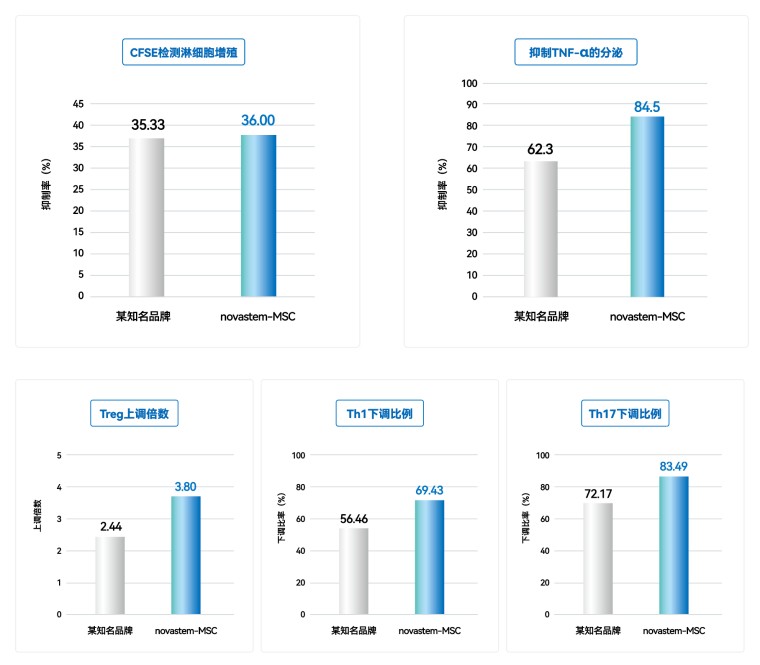 培养的hMSCs具有抑制淋巴细胞增殖、促进Treg上调、促进Th1和Th17下调和抑制TNF-α的表达。