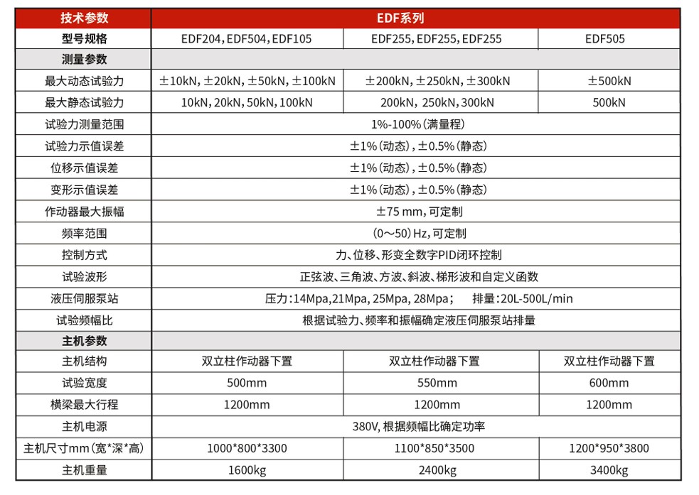 能试验。能在正弦波,三角波、方波,梯形波,组合波形下进行拉伸,压缩、弯曲、低周和高周疲劳、裂纹扩展、断裂力学试验,也可配置环境试验装置,完
