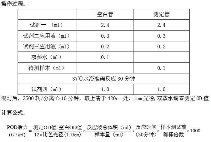 本试剂盒可测各种动物血清(浆)等样本中 POD 活性;