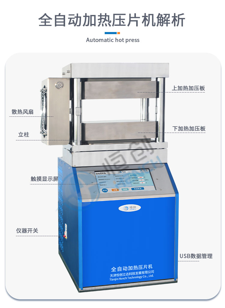 产品介绍 一体式结构设计,全自动加热压片机采用PLC程序控温,工作台面 100-400mm可选,温度分为300℃和500℃。本品适用于聚合物 材料、橡胶、塑料、皮革、纺织等热压成膜研究实验。 仪器型号 HZT-800DG/HZT-800DG2 压力范围 0-25T 活塞直径 95mm 油缸行程 60mm 加压方式 5段可调连续/分段控压-自动加压-自动补压-自动泄压 控温方式 5段可调连续/分段控温-自动升温-自动保温-自然降温 加热范围 500℃ 模具尺寸 180×180mm/200×200mm 有效空间 180×65mm/200×65mm 控压控温精度 0.1T/0.1℃(可定制自行设置精度) 保温时间 不限时,到达设定温度停止加热 显示方式 7寸液晶触摸屏/中英文界面可切换 压强换算 PCB控制程序自然换算显示样品所承受压强(Mpa) 加热芯材质 四柱定位隔热设计,上下板加热,上板丝杠悬吊设计 电镀抛光面板 加热芯材质 铜质加热芯 隔热方式 进口云母隔热板 降温方式 标配壁挂风冷机 被动安全 带有漏电保护+急停开关 安全配置 程序压力,机械压力故障报错急停功能 模具温度超过50℃,温控器自动提示“注意防烫” 设备电源 220V(50Hz/60Hz)/可选配110V 设备功率 2300W 外形尺寸 280×420×625mm 设备重量 163Kg 配置说明 可根据客户需求定制控制面板尺寸加宽,立柱加高 温控器可选配远程控制