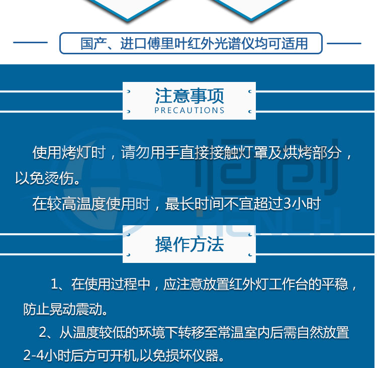 产品介绍 ZHD-20红烘烤灯具有很强的热效应,发出的热能量易于被物体吸收 适用于各种粉末材料、液体样品的的快速加热和烘干。用户可根据实 验调节所需温度。 技术参数