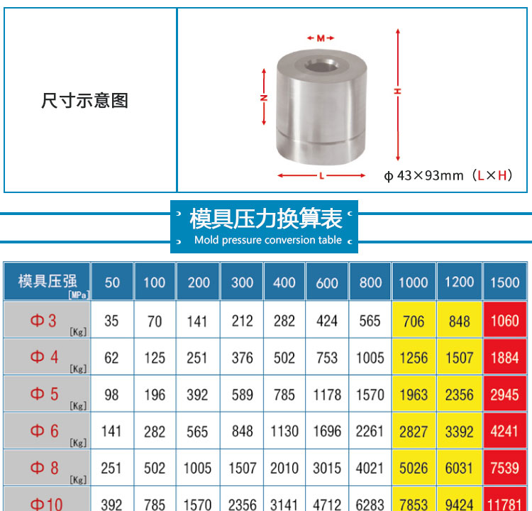 Φ3、Φ4mm、Φ5mm、Φ6mm、Φ8mm、Φ10mm(M)