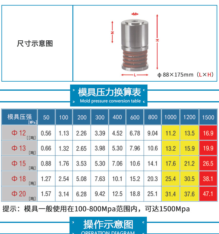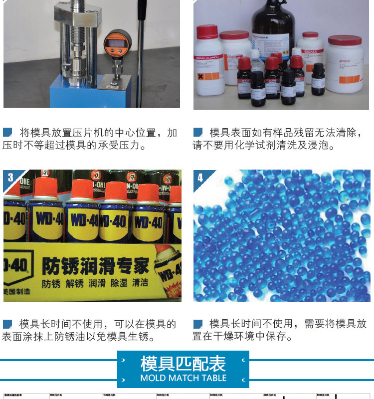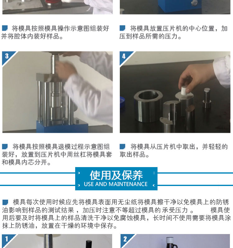户需求定制不同尺寸的压片模具。