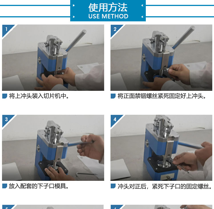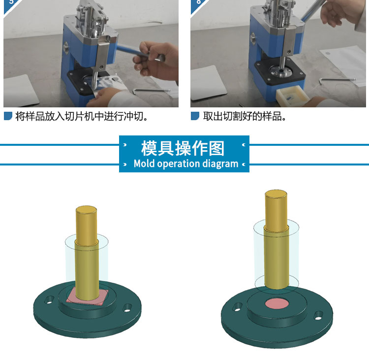 产品介绍 手动切片机是专门为实验室试样制备而设计的专用切片机,配备不同规格 的模具可在薄片材料上进行冲孔、落料等工艺。整机设计小巧,使用灵活 便捷,非常适用于在0.01-0.5mm厚度的大部分电池材料、隔膜纸等材料 上进行落料 仪器型号 CMS-10 模具材质 9铬18# 模具钢 冲切压力 Max:200Kg 冲头行程 Max:16mm 接料盒 防静电ABS材质 切片尺寸 120×205×285mm 设备重量 10.5Kg 标配刀头 Φ12mm、Φ16mm
