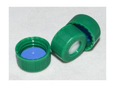 Cap, screw, green, preslit PTFE/silicone, 100/pk