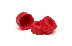 Cap, screw, red, PTFE/silicone/PTFE septa, 100/pk
