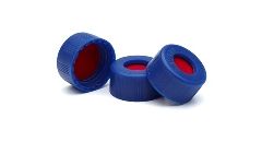 Red screw cap, bonded preslit blue PTFE/silicone septa, 100/pk