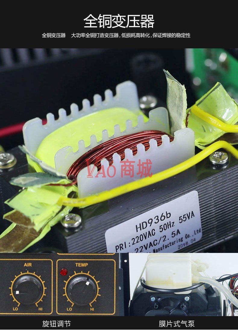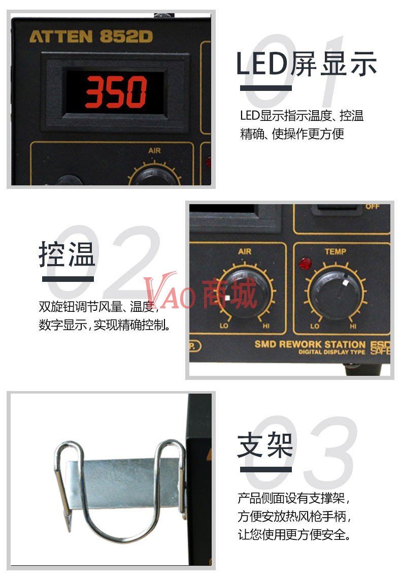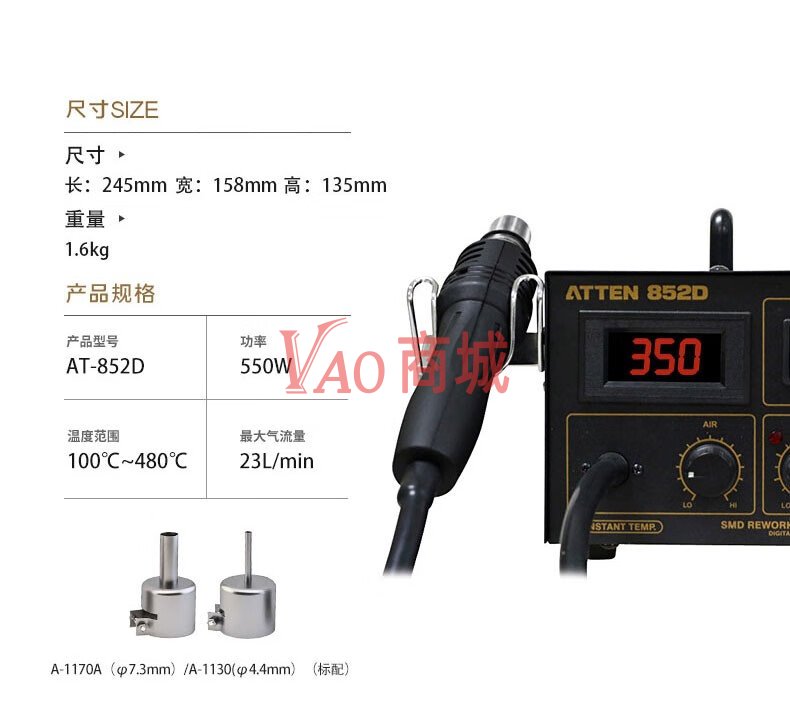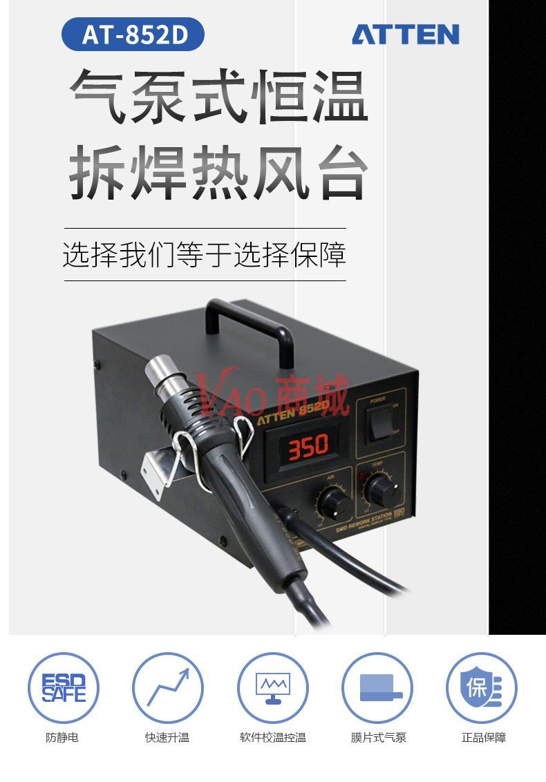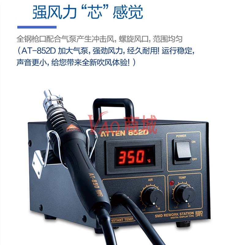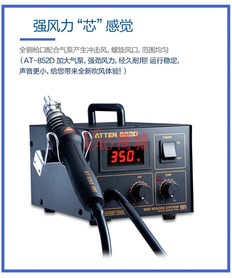 安泰信(ATTEN)数显热风枪焊台AT852D工业级热风台维修拆焊台功率550W