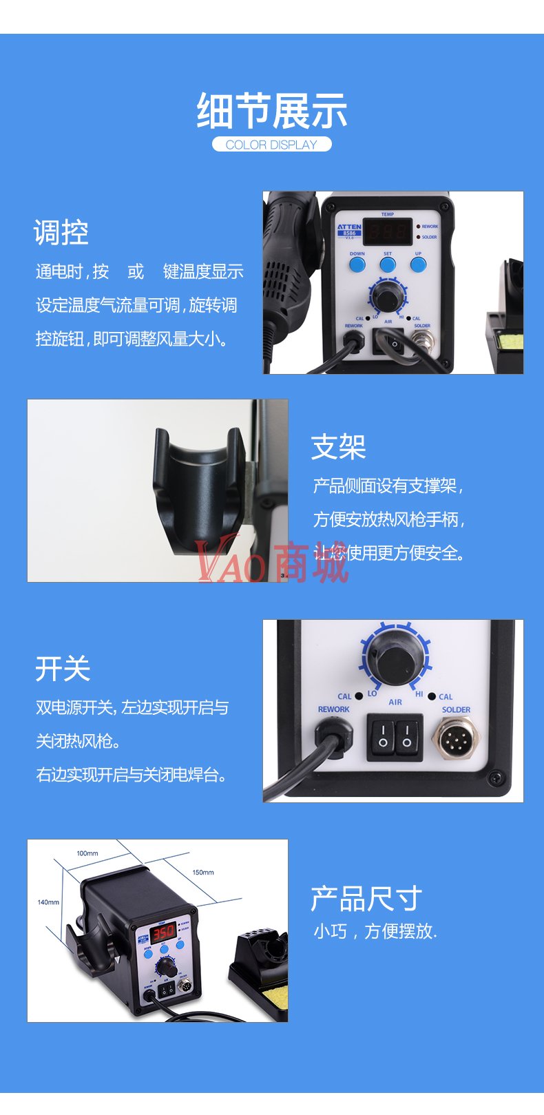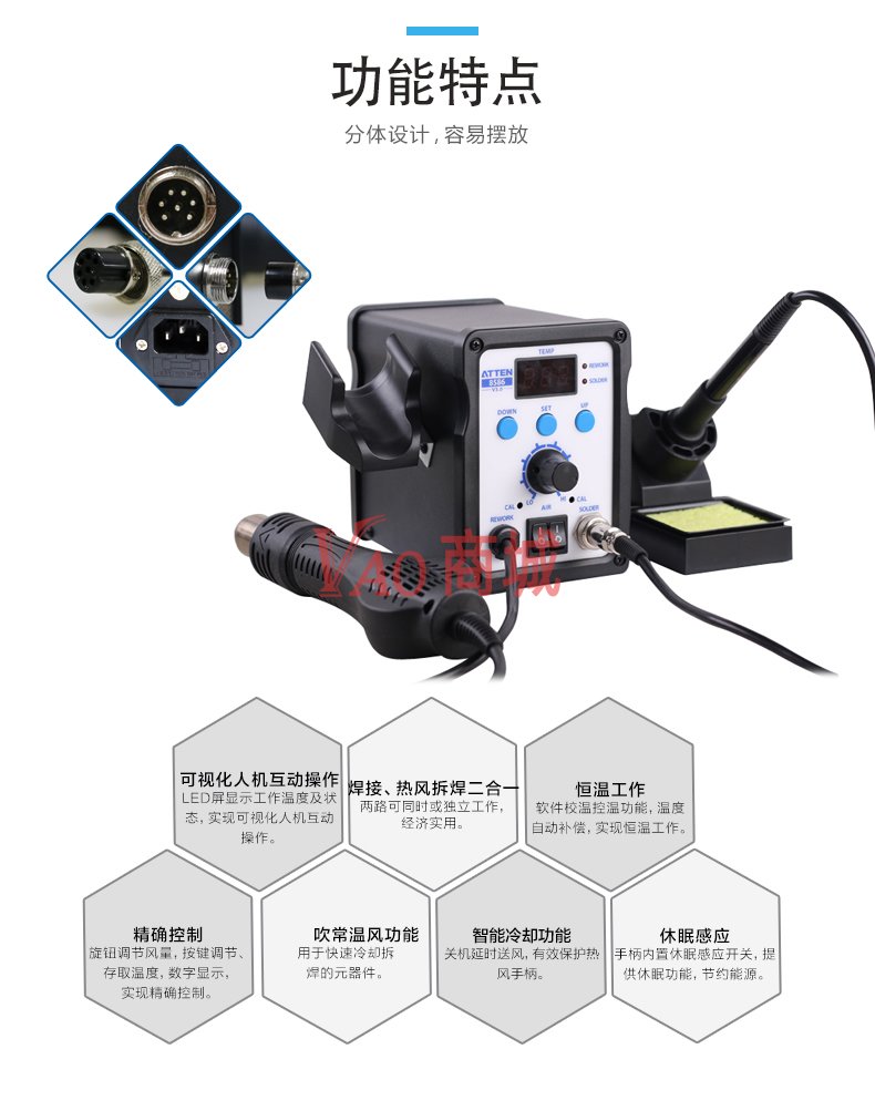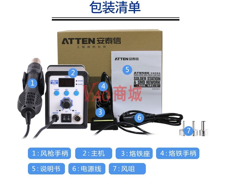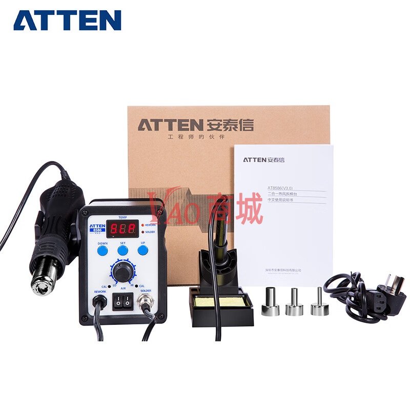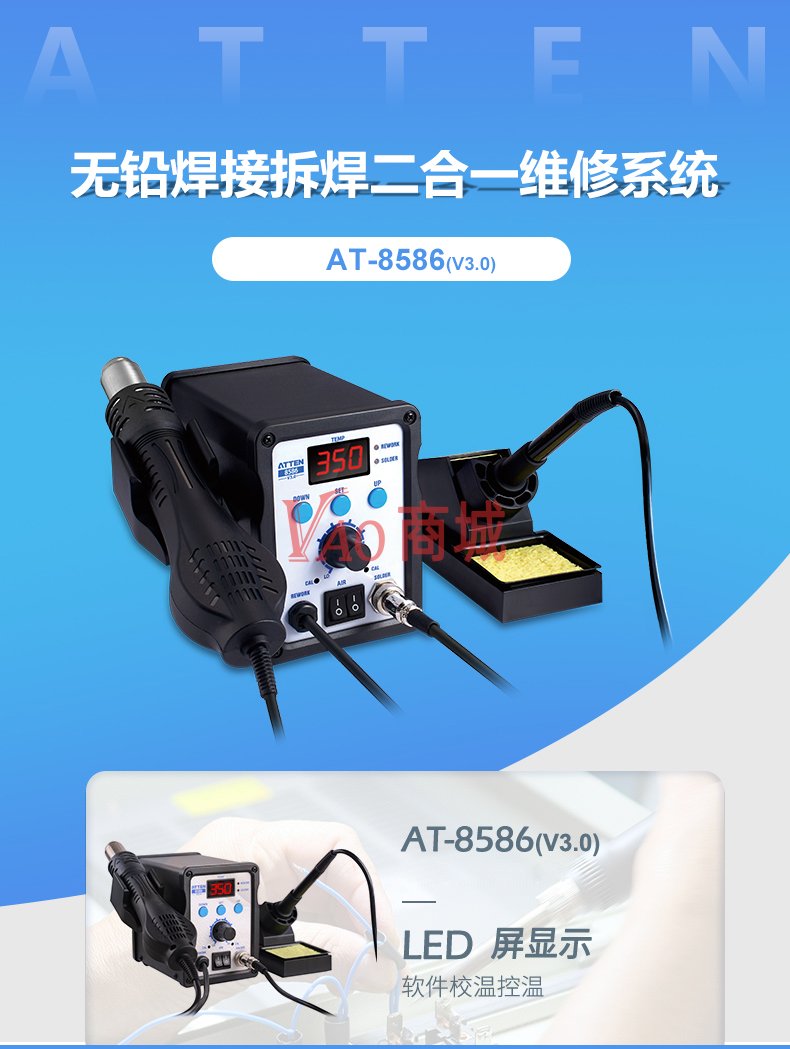 安泰信(ATTEN)二合一热风拆焊台电烙铁AT8586调温电烙铁数显热风枪焊台700W