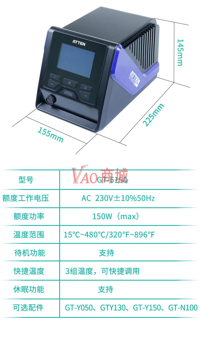 安泰信(ATTEN)工业级单通道高端智能无铅电焊台GT-6150A整机功率150W标配+A套餐