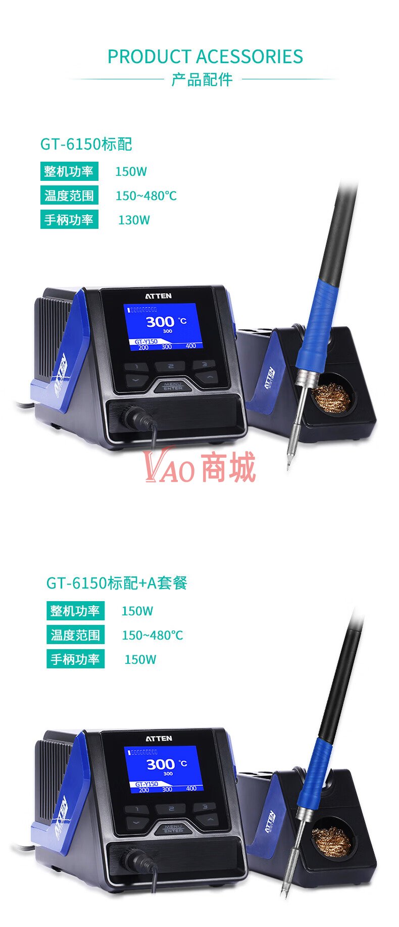 安泰信(ATTEN)工业级单通道高端智能无铅电焊台GT-6150B整机功率150W标配+B套餐