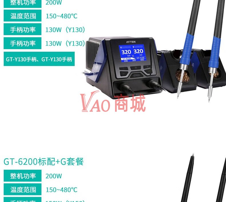 安泰信(ATTEN)工业级双通道高端智能无铅电焊台GT-6200F整机功率200W温度范围150-480度标配+F套餐