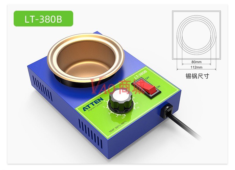 安泰信(ATTEN)小型焊锡炉无铅可调温焊锡锅熔锡炉环保小锡炉LT-380B熔锡炉非R