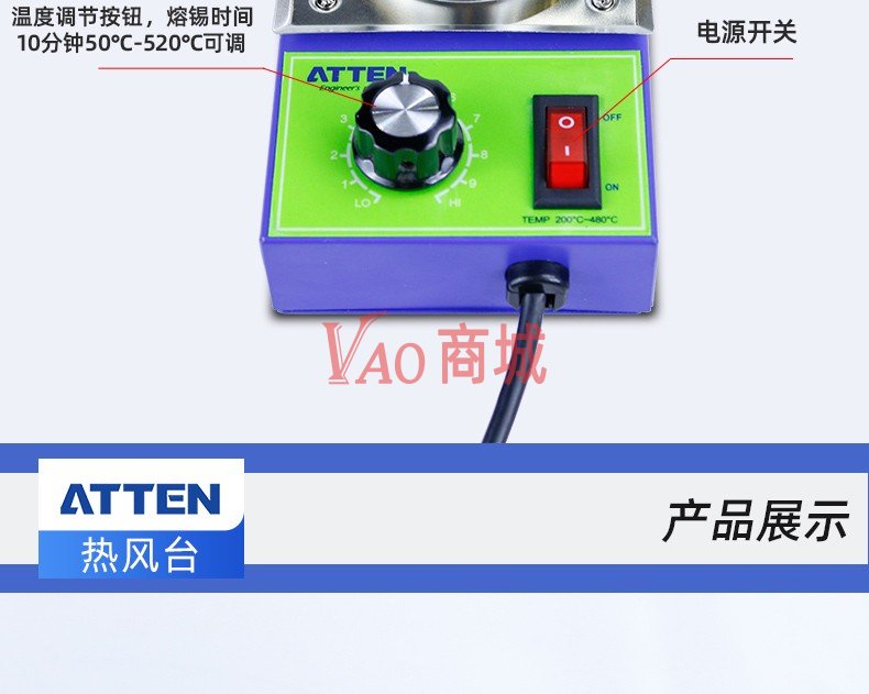 安泰信(ATTEN)工业级数显无极调温热风枪贴膜加热手机维修手持焊枪AT-A2231国标220-240V2000W三档设置ROHS