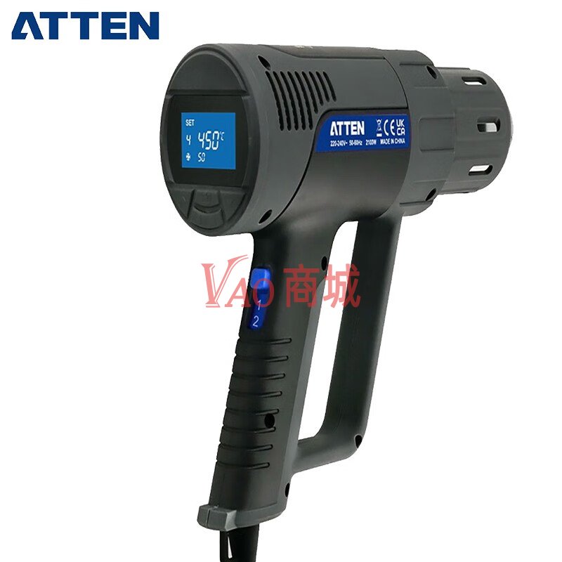 安泰信(ATTEN)大功率手持热风枪可调温数显贴膜除漆清胶热风枪ST-8230D标配2100W(有刷LED显示)ROHS