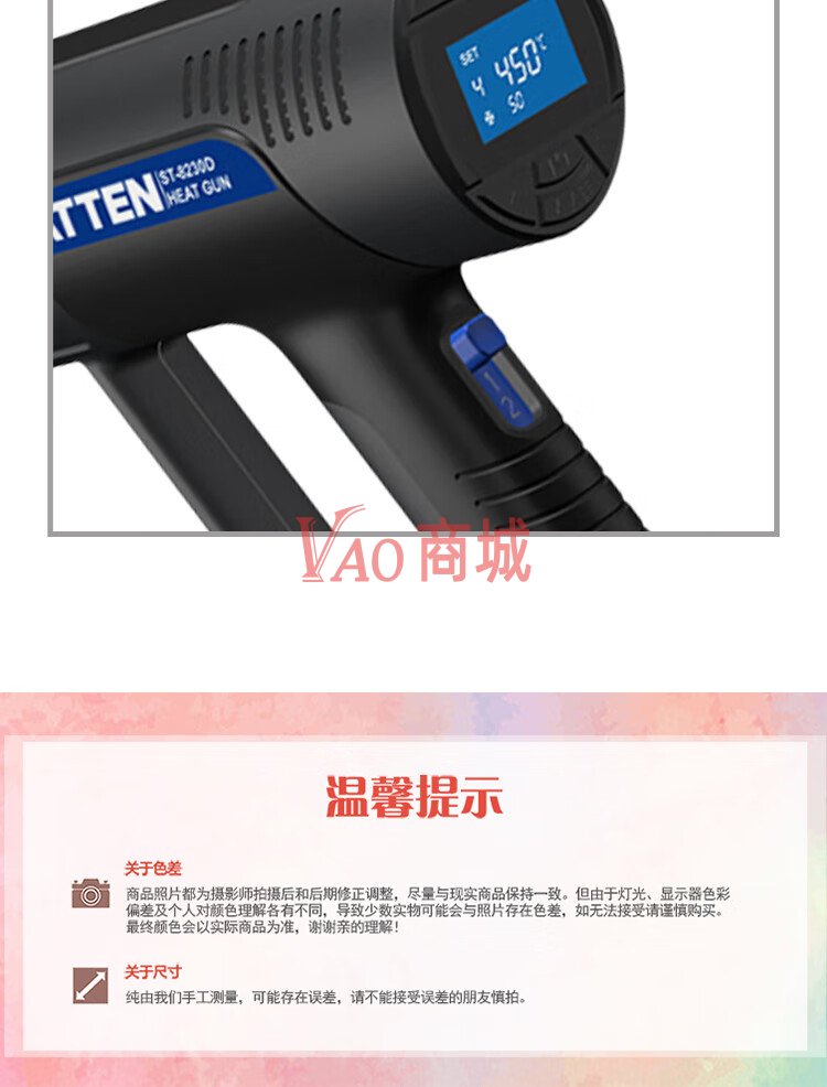 安泰信(ATTEN)大功率手持热风枪可调温数显贴膜除漆清胶热风枪ST-8230DX标配2300W(无刷LED显示)ROHS