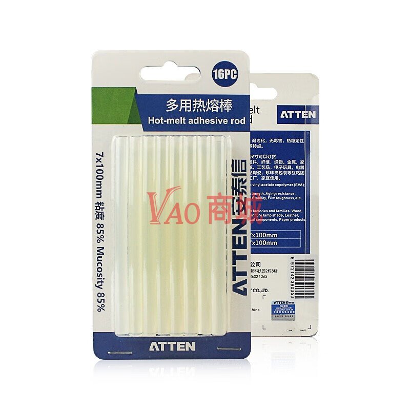 安泰信(ATTEN)工业级热胶枪配热熔胶棒胶条ф7x100白色透明16支/盒ROHS