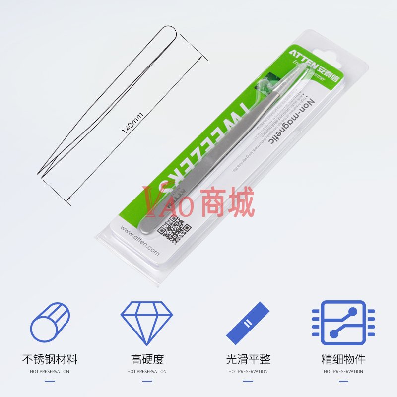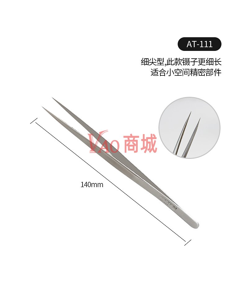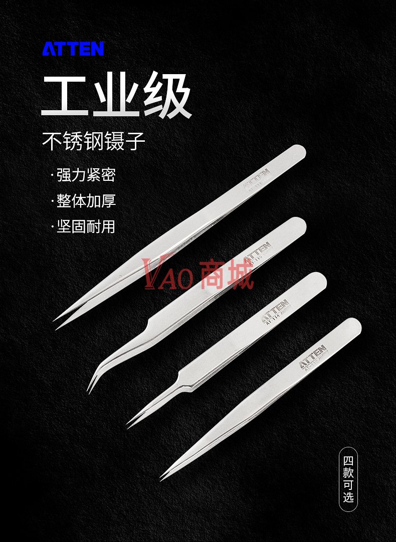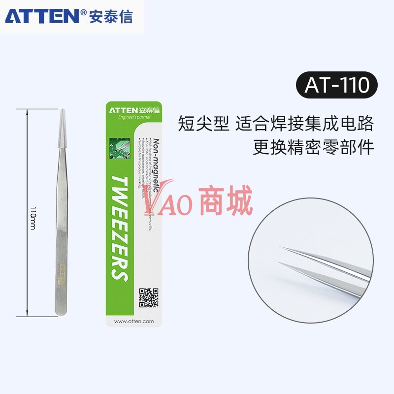 安泰信(ATTEN)不锈钢镊子AT-110维修工具配件短尖型