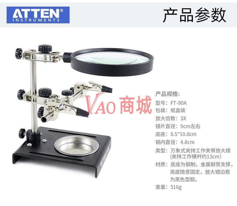 安泰信(ATTEN)焊接放大镜座维修架电烙铁辅助焊接电路板固定夹具FT-90A放大镜架
