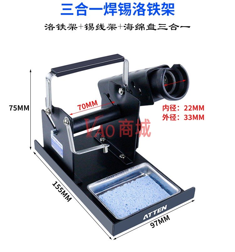 安泰信(ATTEN)全金属烙铁座锡线架焊接支架电焊台烙铁TJ227放置架锡线架