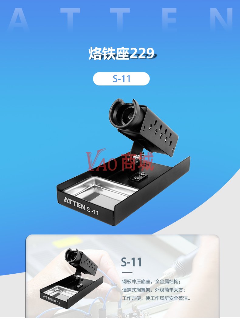 安泰信(ATTEN)全金属耐高温烙铁架烙铁座S-11多功能海棉座ROHS