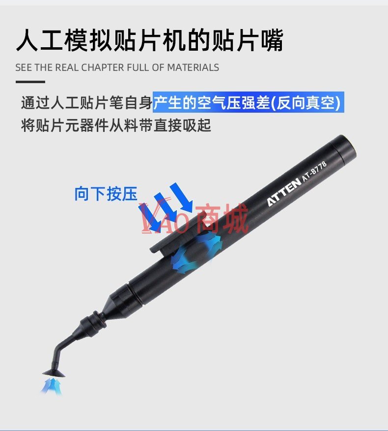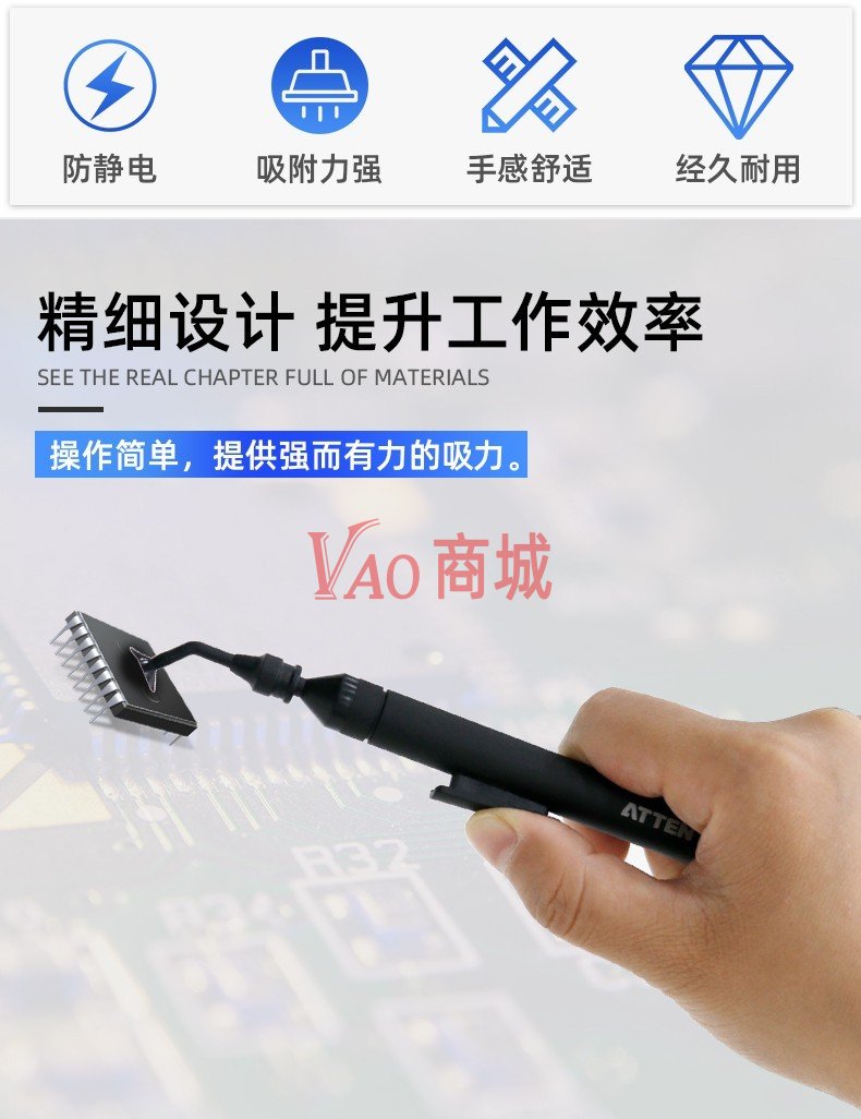 安泰信(ATTEN)手动真空吸笔防静电手动强力吸盘吸贴片AT-B778黑色辅助工具