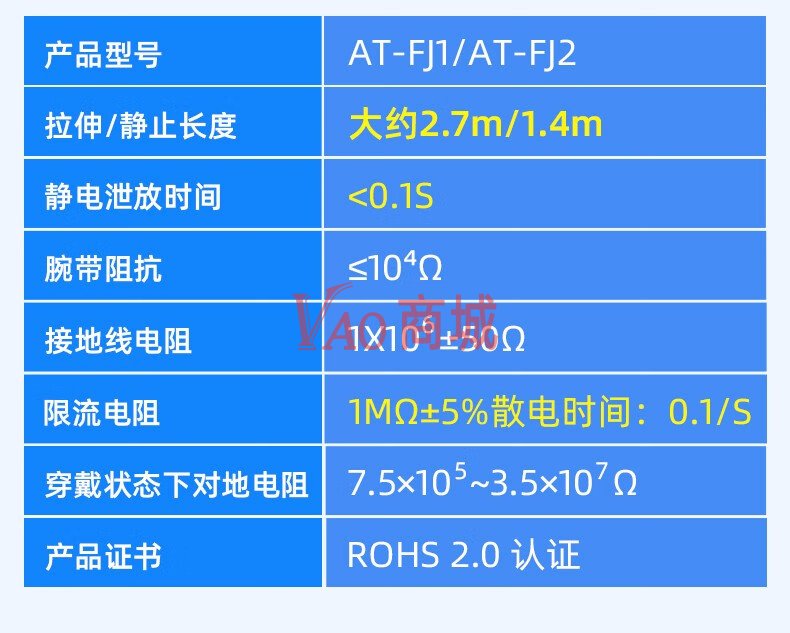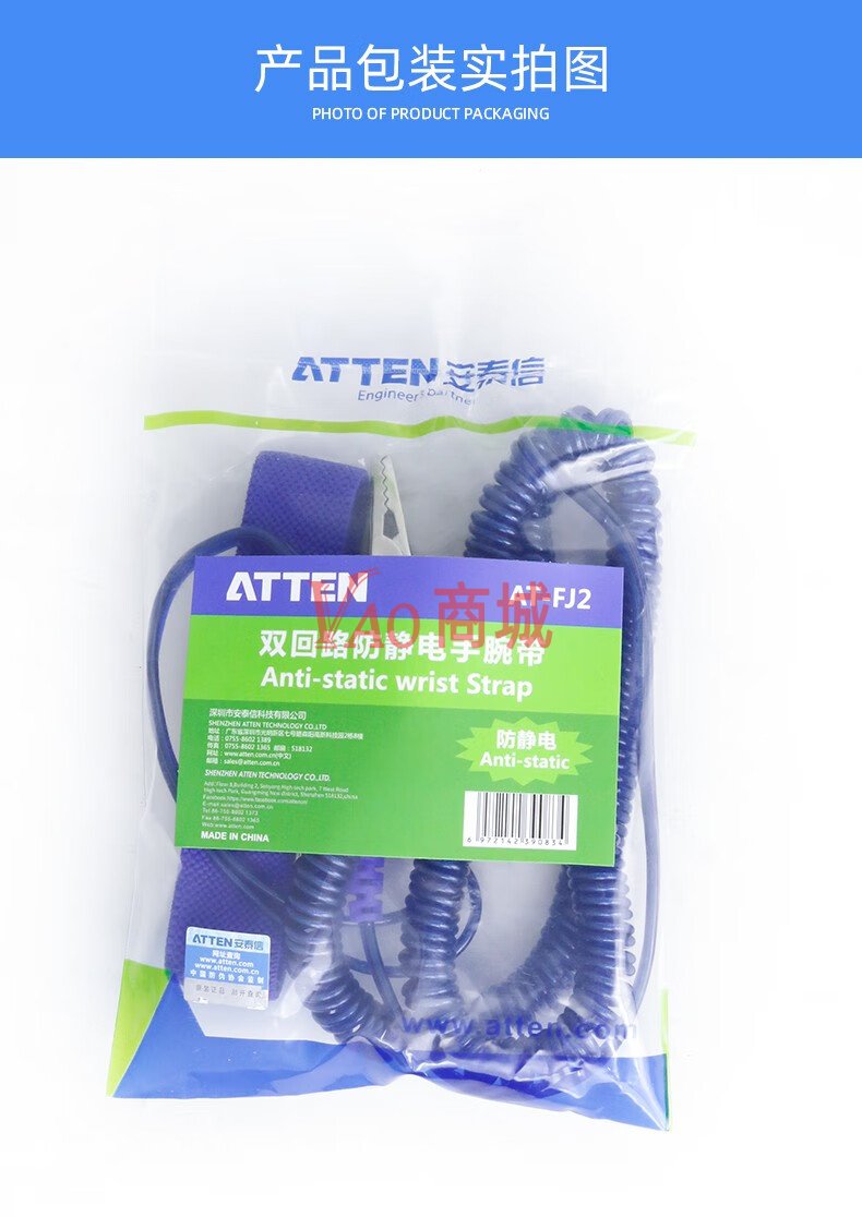 安泰信(ATTEN)单回路有线防静电手腕带AT-FJ1人体除静电松紧手环(蓝色)长约3米