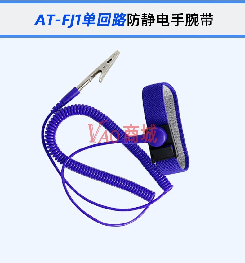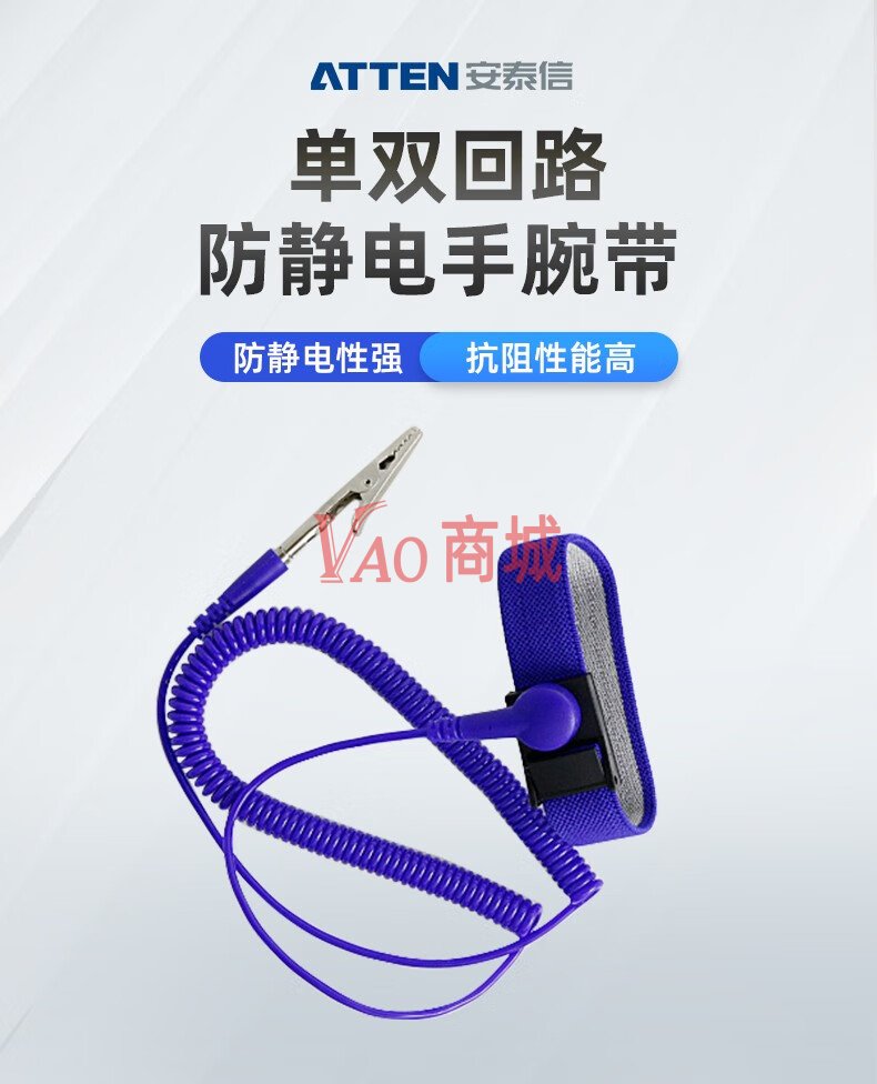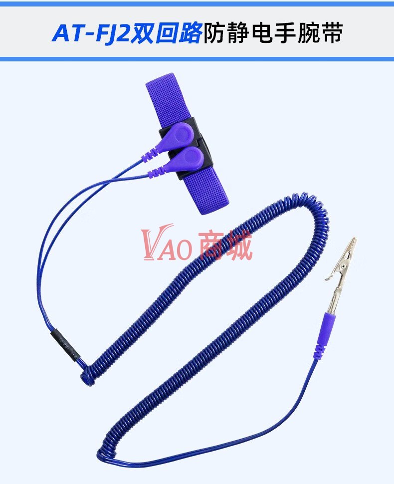安泰信(ATTEN)双回路有线防静电手腕带AT-FJ2人体除静电松紧手环(蓝色)长约3米
