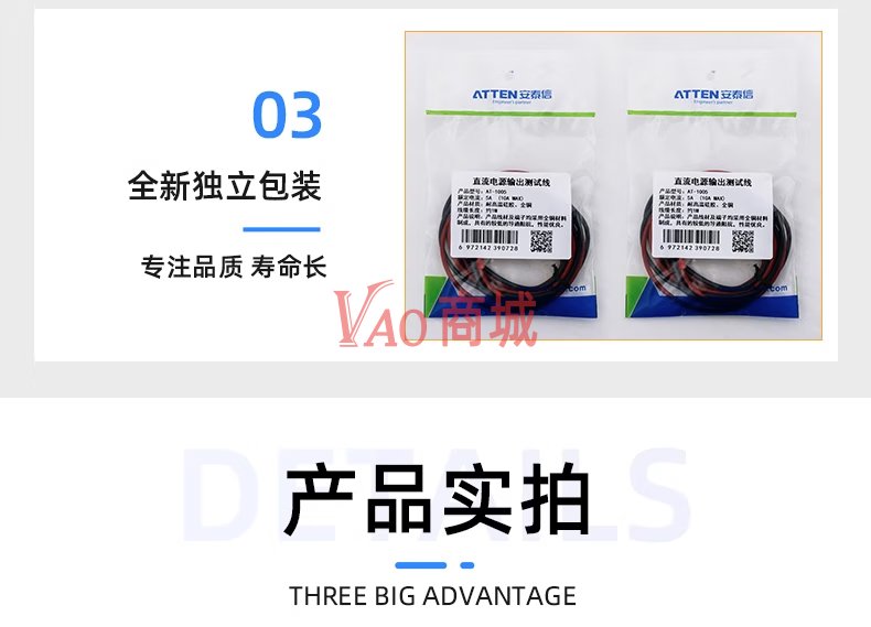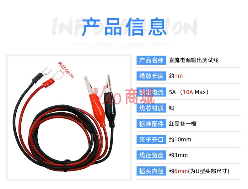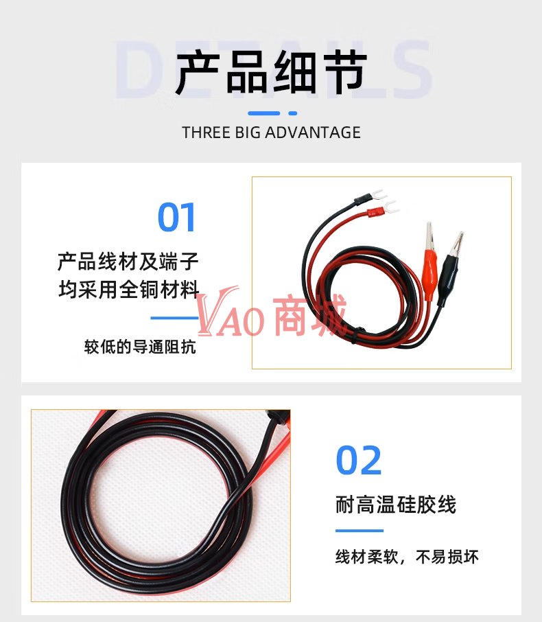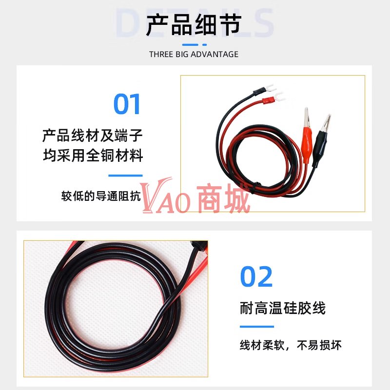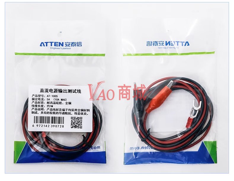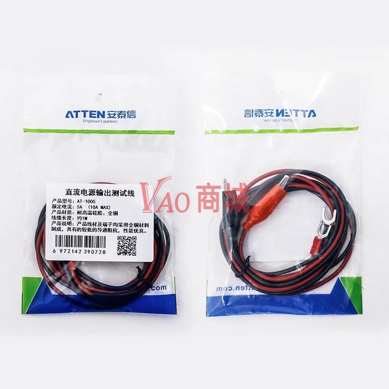安泰信(ATTEN)电源测试线全铜耐高温硅胶直流电源输出连接线AT-1005红黑1000mm(电源使用)