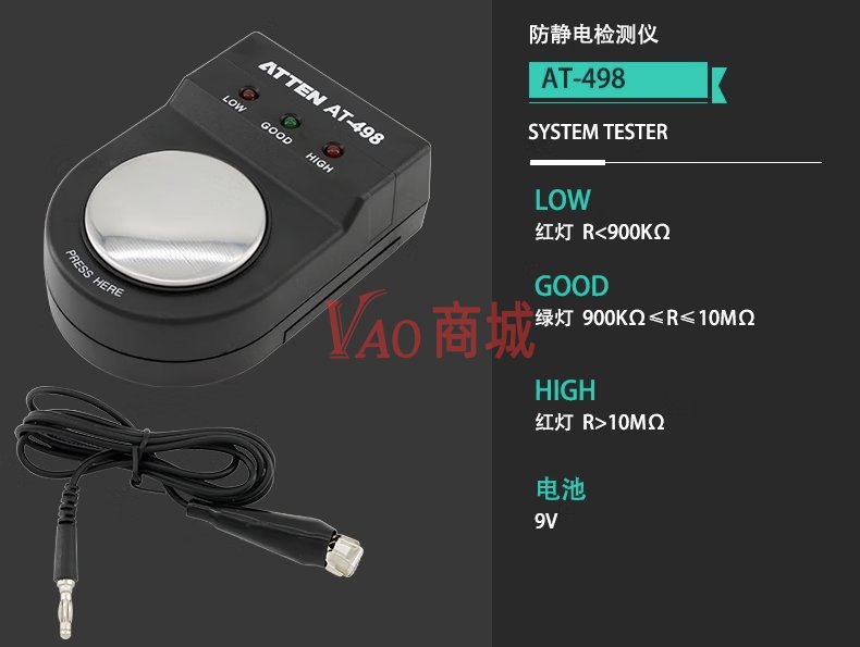 安泰信(ATTEN)防静电手腕带测试仪工厂电工检测器测试器防静电手环测试仪AT-498低能耗