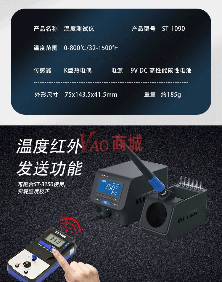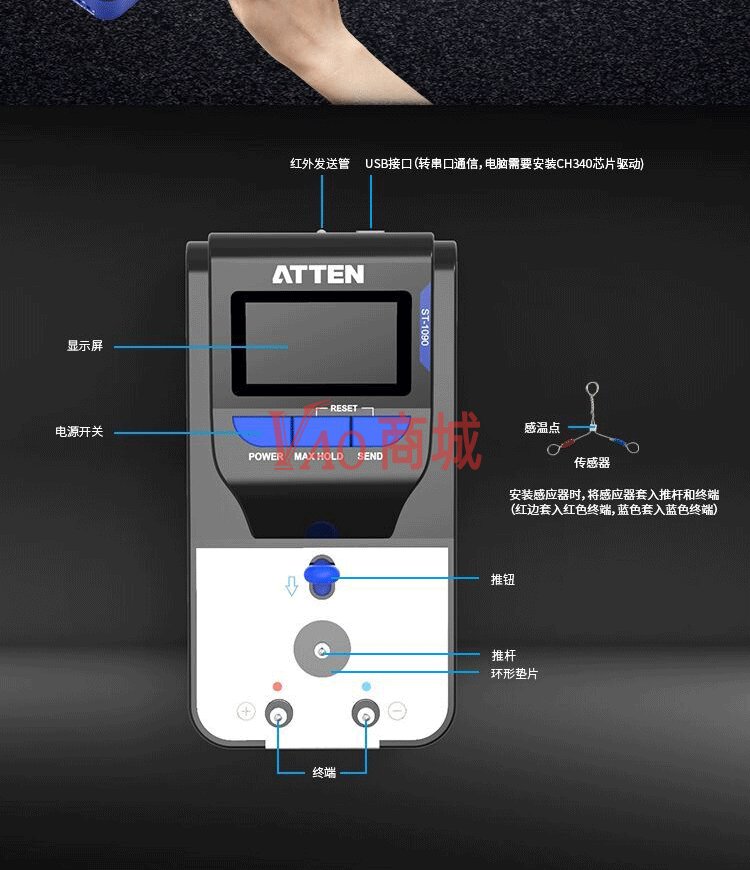 安泰信(ATTEN)烙铁温度测试仪测温仪传感线1090-10(10PCS/包)