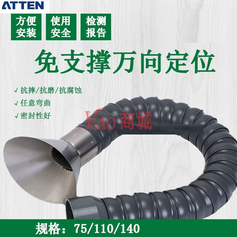 安泰信(ATTEN)工业级万向竹节管吸烟罩焊锡排烟管A-1075A(黑色)(带阀门)(材料ABS)(75mm*1.3m)