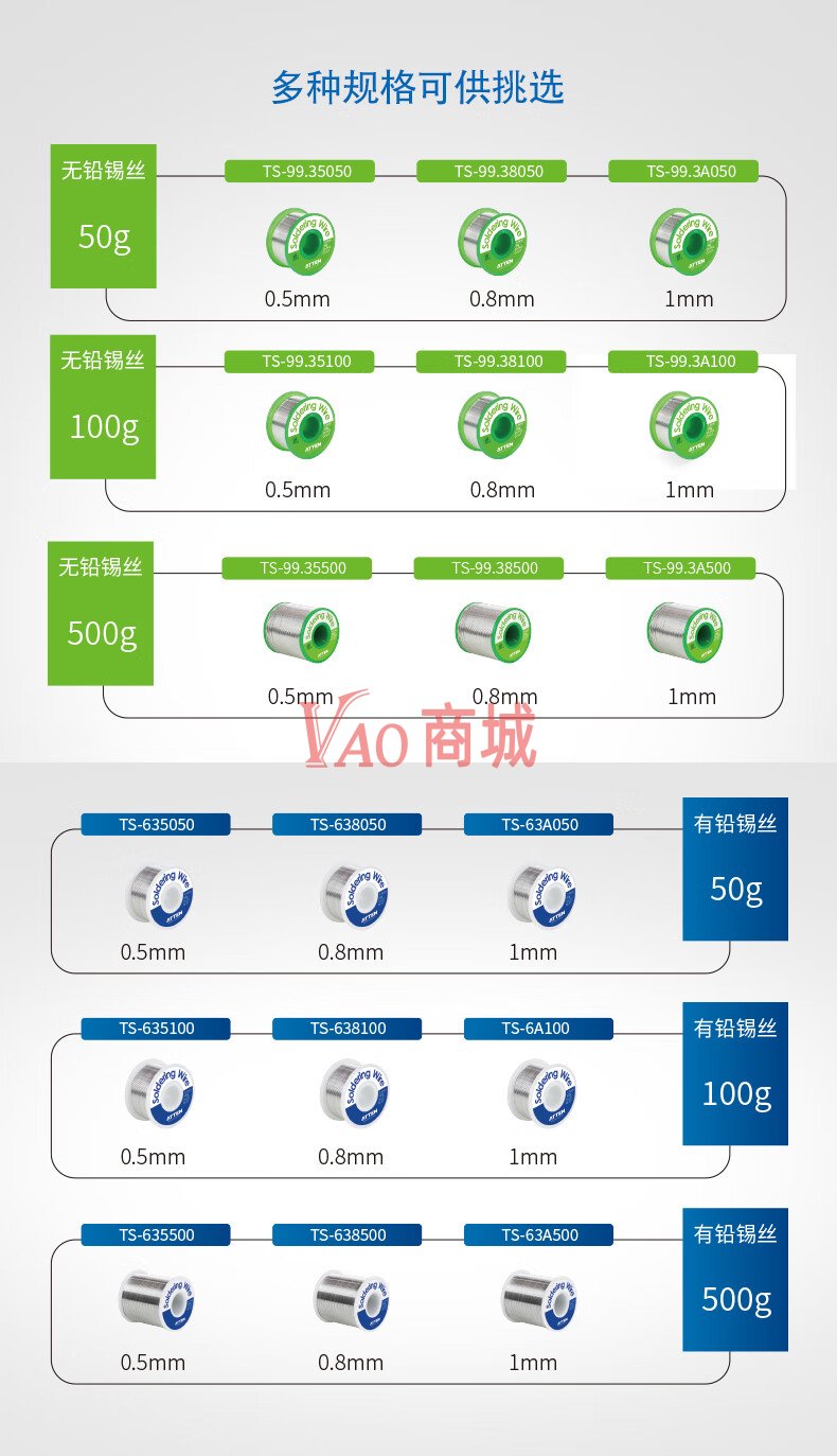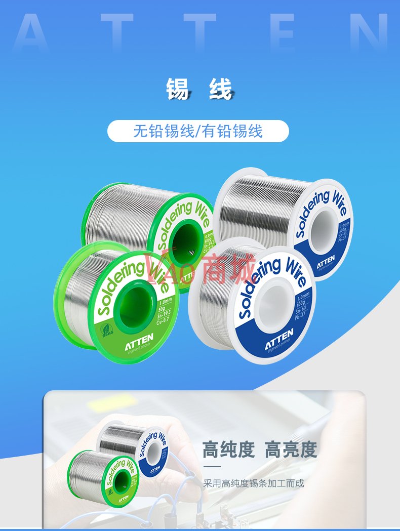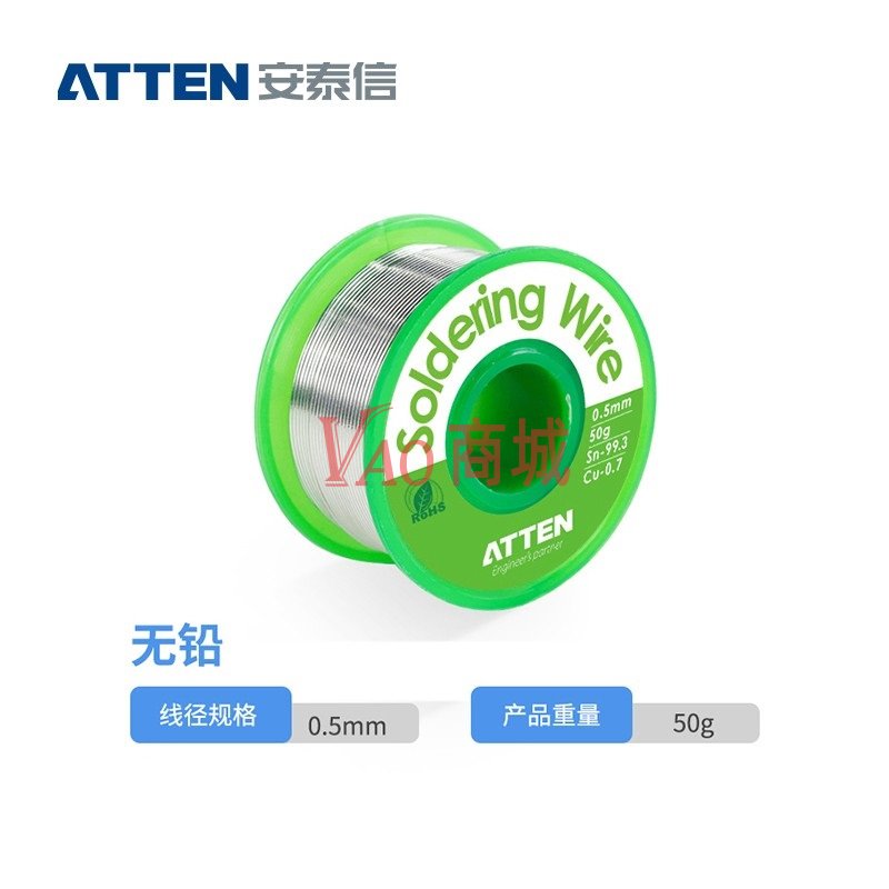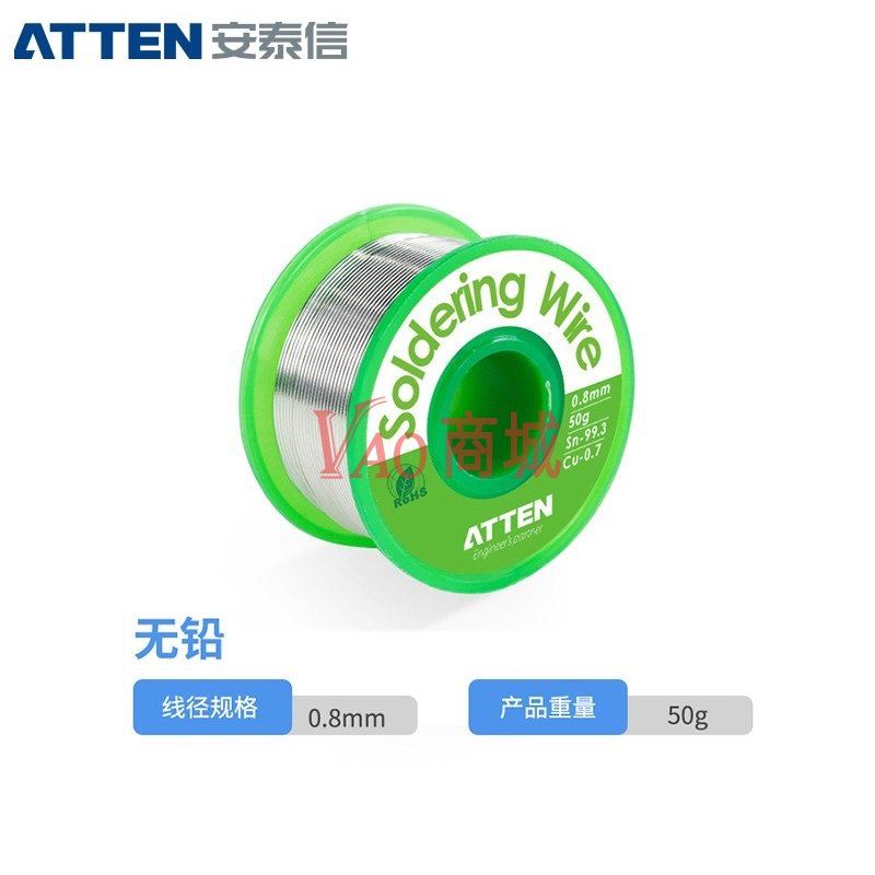 安泰信(ATTEN)锡线高纯度无铅环保焊锡丝TS-99.38050S无铅锡线焊不锈钢Sn99.3Cu0.750g/0.8mm/卷