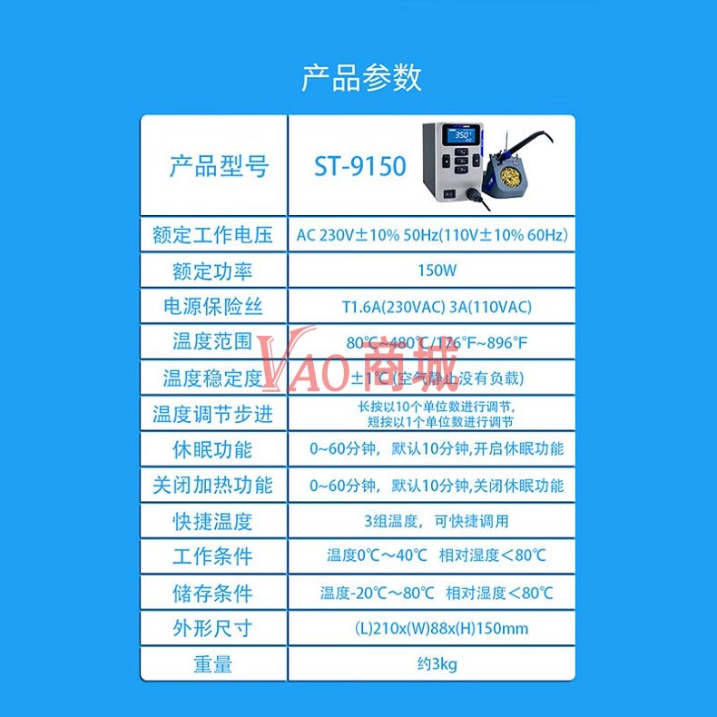 安泰信(ATTEN)无铅防静电可调温恒温大功率焊台套装标配ST-9150-Y950电烙铁50w
