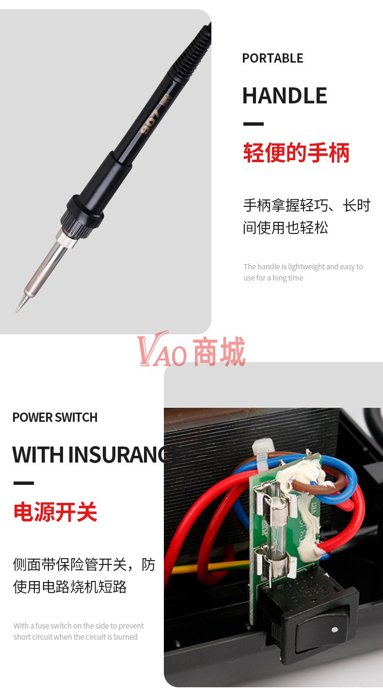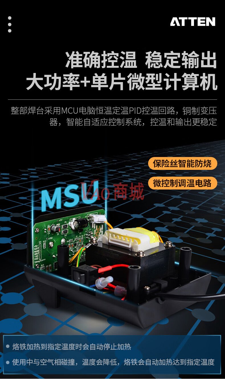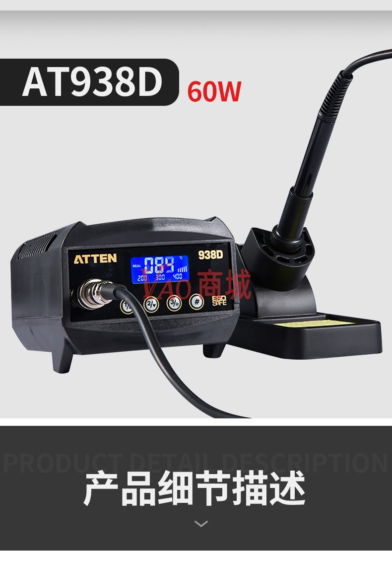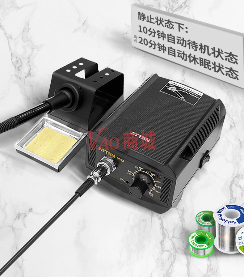 安泰信(ATTEN)工业级大功率无铅ESD焊接电洛铁套装AT937A电路板维修工具65W温度200-480插拔四芯不锈钢发热芯休眠功能