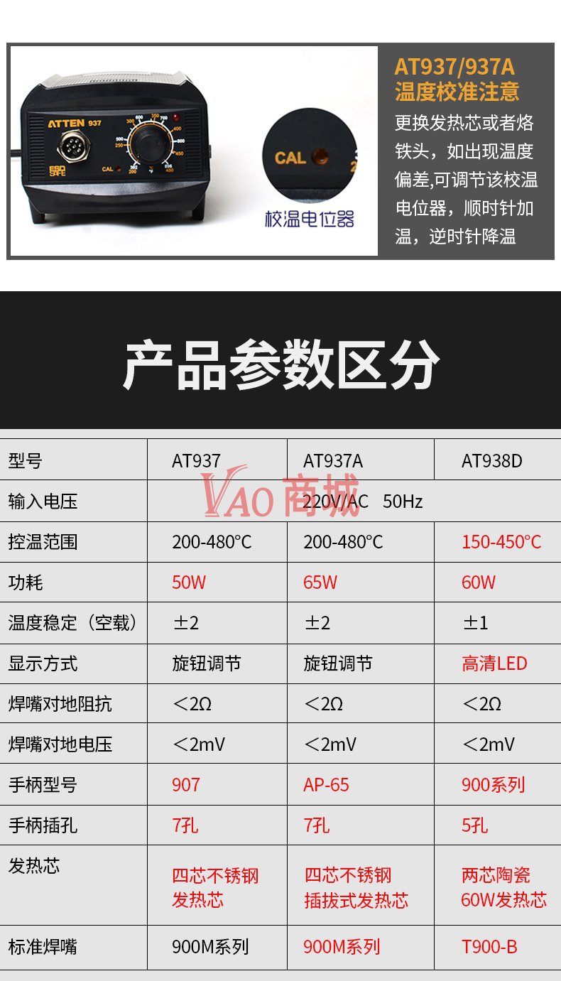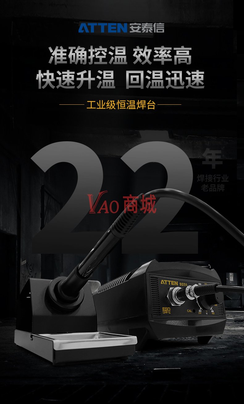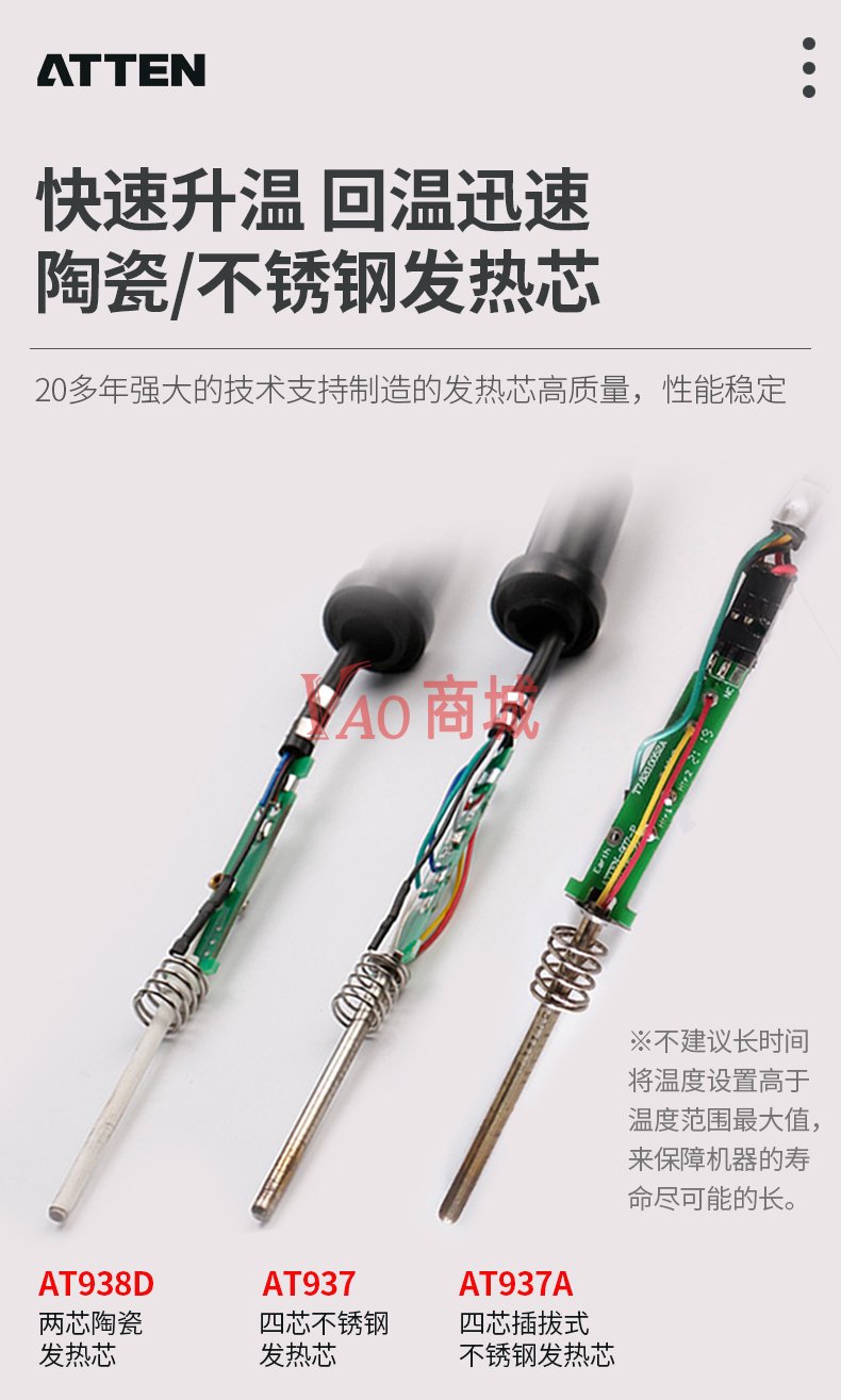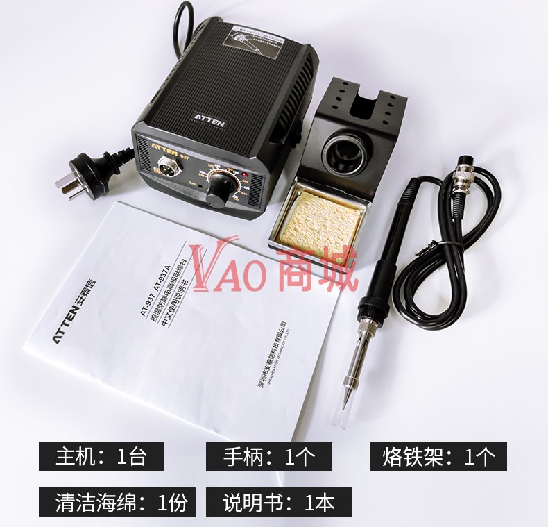 安泰信(ATTEN)工业级大功率无铅ESD焊接电洛铁套装AT938D电路板维修工具60W温度150-450度发热芯二芯陶瓷发热芯