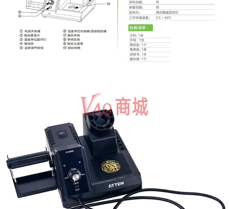 安泰信(ATTEN)工业级智能无铅电焊台ST-990标配200-500℃可调温电焊台烙铁套装(90W)