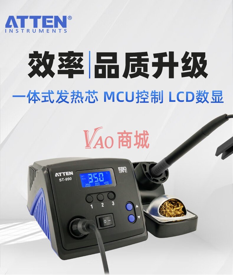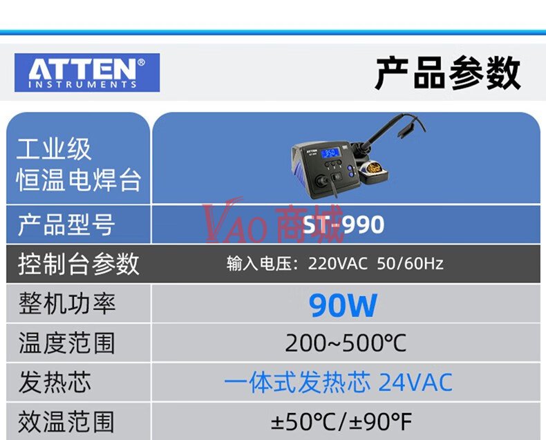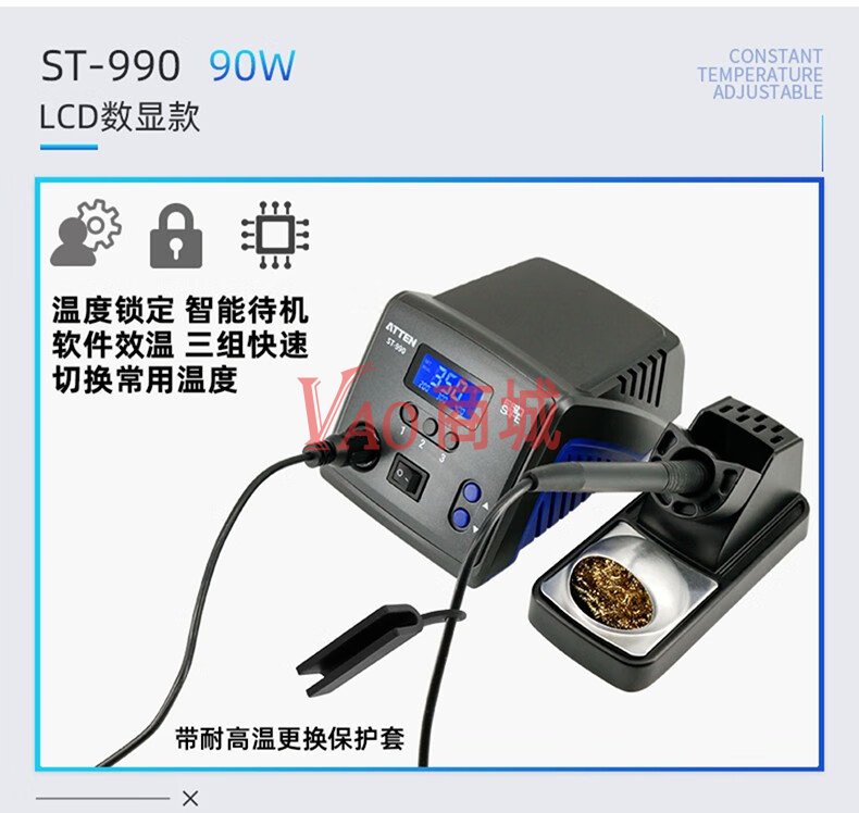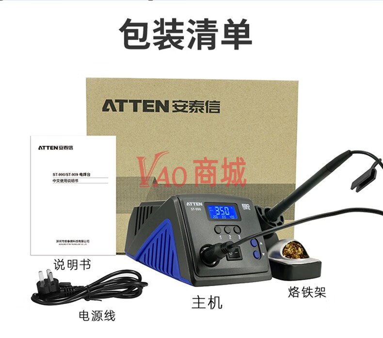 安泰信(ATTEN)工业级智能无铅电焊台ST-990标配200-500℃可调温电焊台烙铁套装(90W)