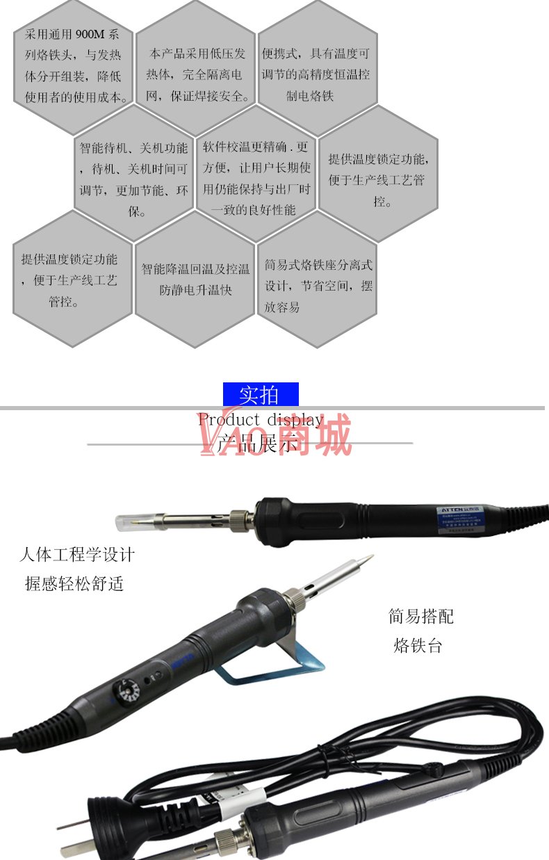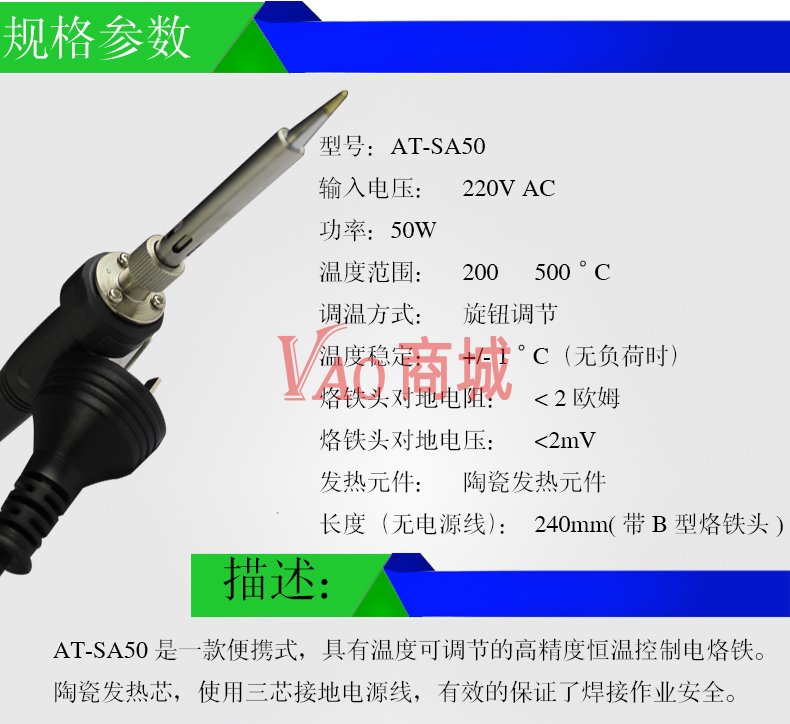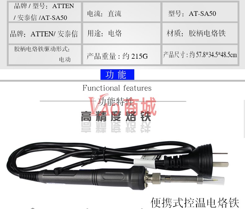 安泰信(ATTEN)高品质恒温控温电烙铁防静电可调温电焊笔SA-50家用维修电洛铁功率50W温度200-500度
