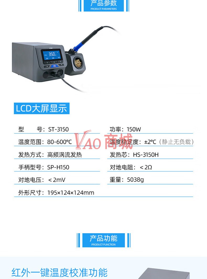 安泰信(ATTEN)数显高频涡流电焊台ST-3150D工业级电焊机焊接工具150W功率电烙铁230V有通讯功能