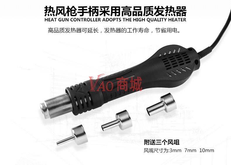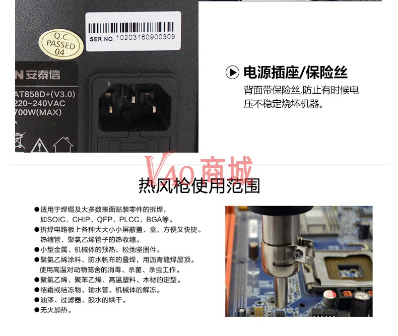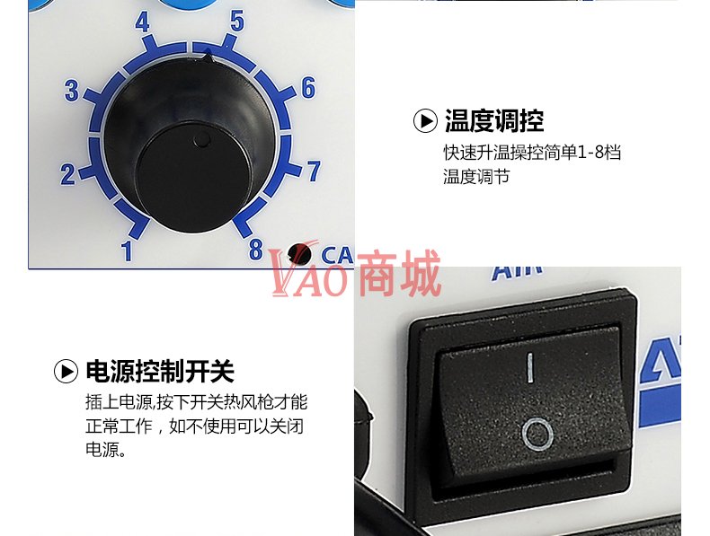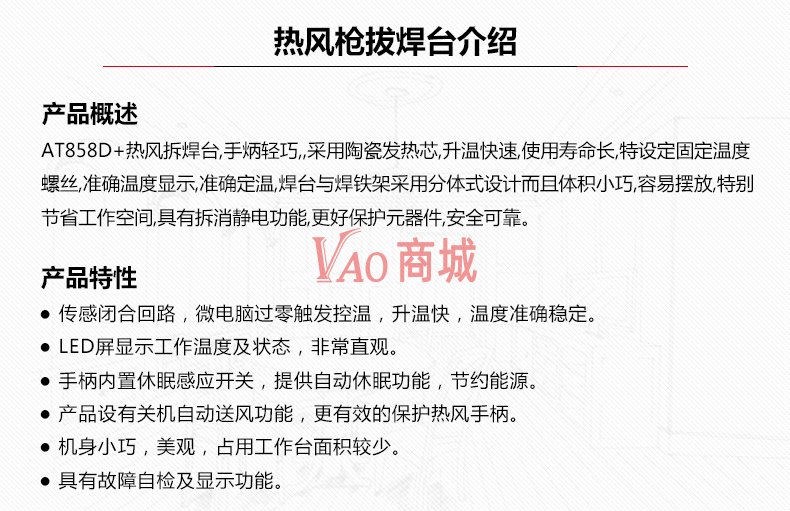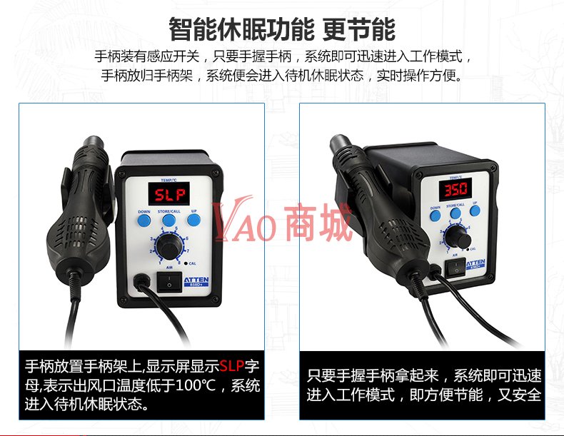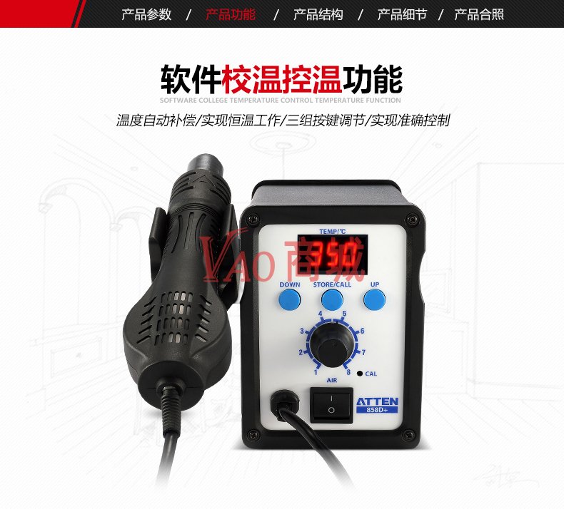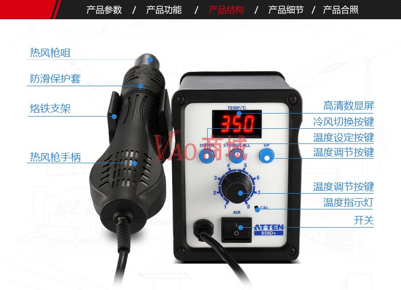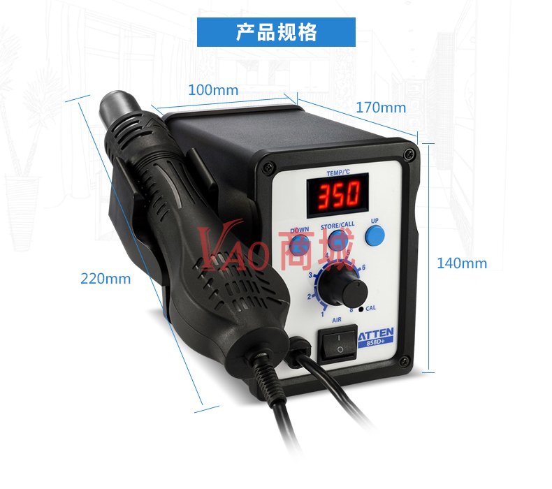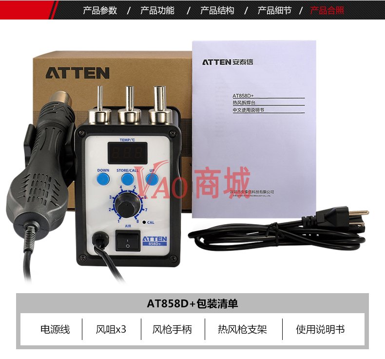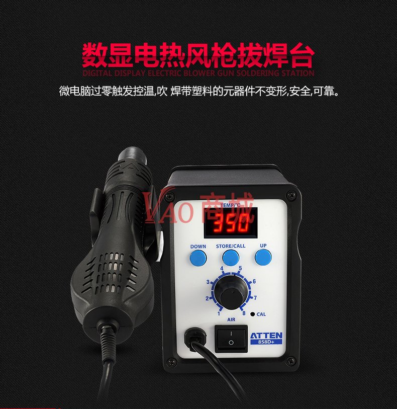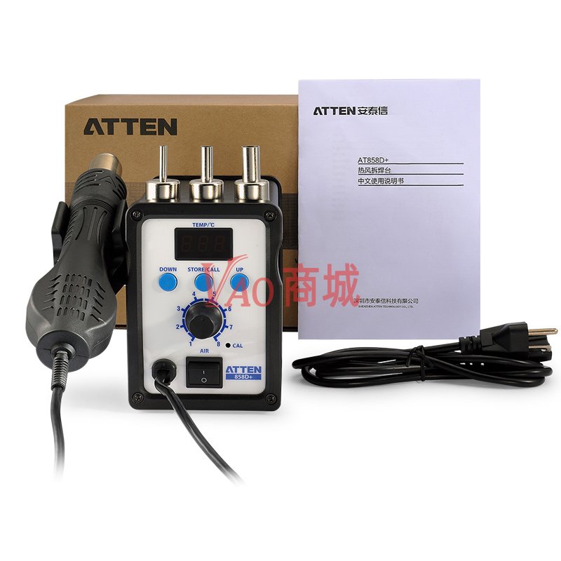 安泰信(ATTEN)无铅防静电数显可调温热风拆焊台AT858D+热风枪焊台功率700W温度100-500度涡流式风扇MCU控制LED数显带休眠