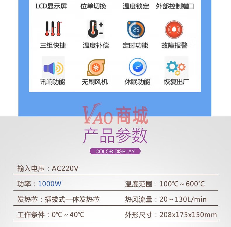 安泰信(ATTEN)AT系列热风枪数显热风枪可调节塑料焊接电烤枪AT-A822D-2000W热风枪2000W配风嘴