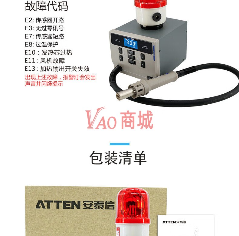 安泰信(ATTEN)无铅防静电拆焊台热风拆焊台业级热风拆焊台ST-862D-E带报警功能230V1000W大功率带外部模拟控制端口