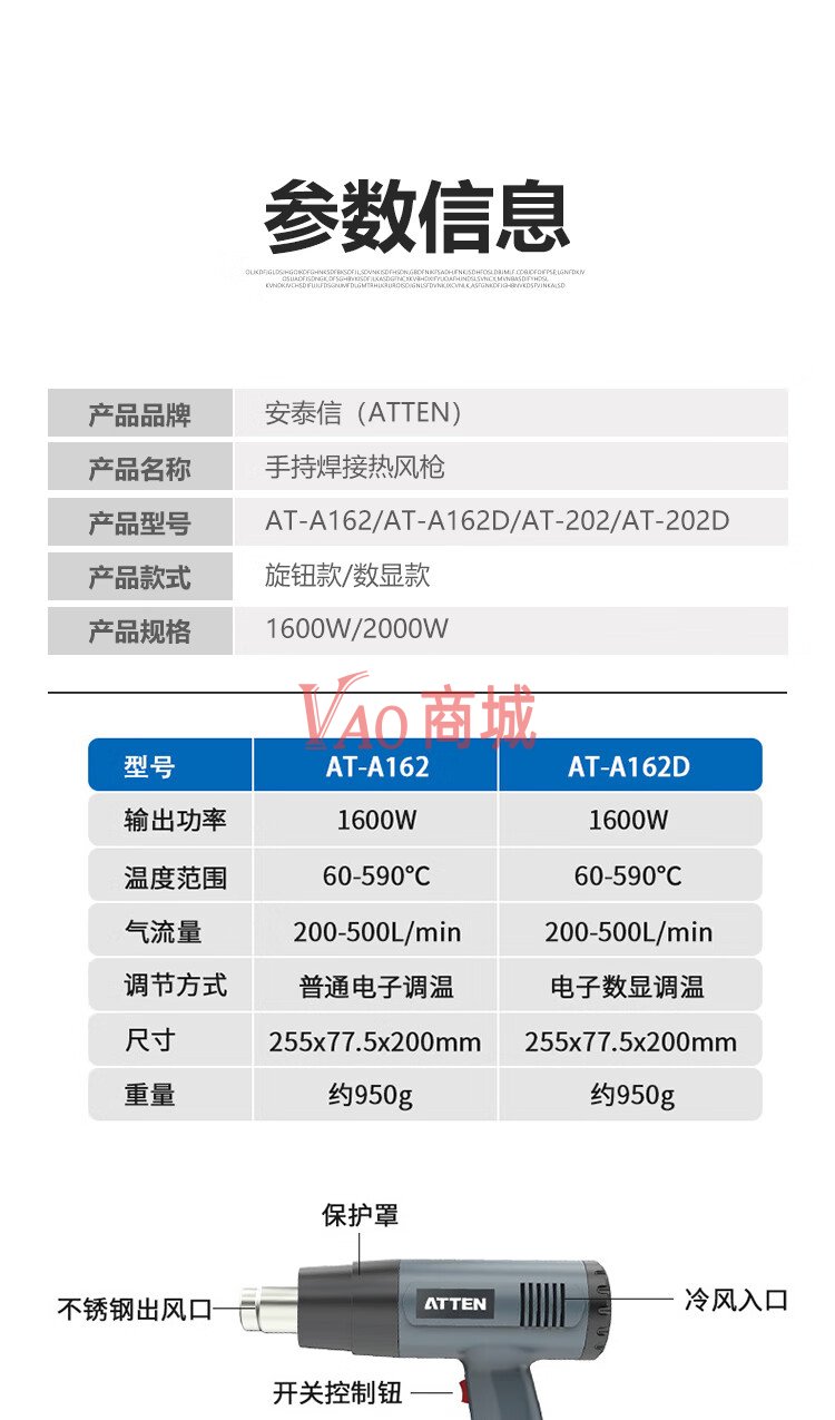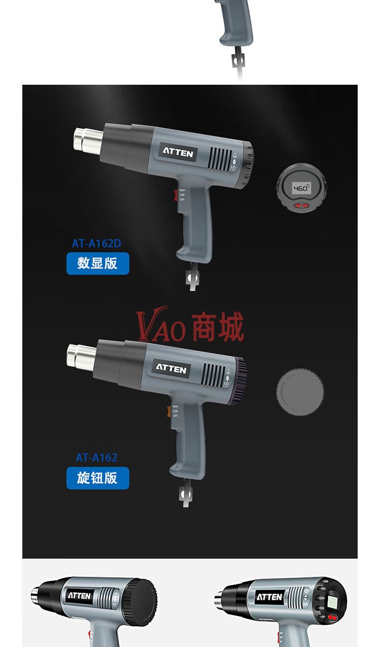 安泰信(ATTEN)数显款手持焊接热风枪AT-A162D家用工业拆焊维修焊枪1600W(数显)