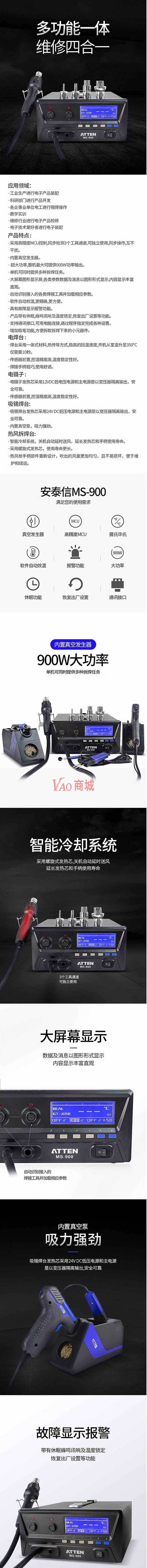 安泰信(ATTEN)四合一热风枪电烙铁大功率热风焊台套装MS-900总功率900W温度电焊台150-500度热风拆焊台150-500度吸锡焊台300-500度电镊子150-500度